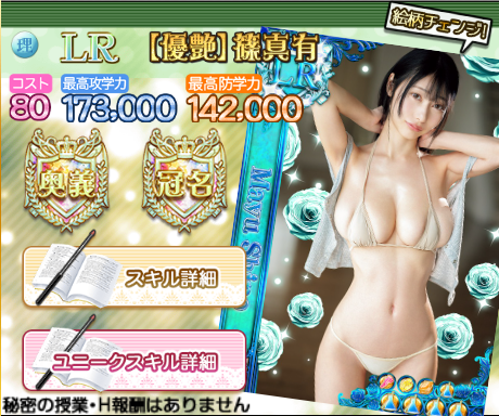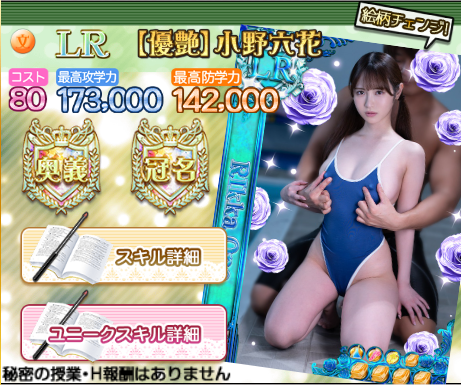 今回の新規優艶生徒は「小野六花(文)」「篠真有 (理)」の2名で、教科にこそ違いはあれど、ステータス・スキル・Uスキル・奥義・冠名の効果はどちらも同じです。