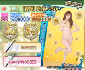 コラボ生徒である【優艶】松本いちか(体)はランキング報酬にて入手でき、その性能は下記表の通りです。