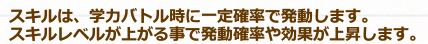 ゲーム内のヘルプを見ると、スキルは一定確率で発動し、スキルレベルが上がることで発動確率や効果が上昇すると記載されています。