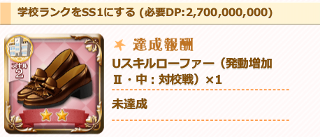 そして、このUスキルローファーは、現時点では『全学校生徒会戦』で入手することが基本となります。