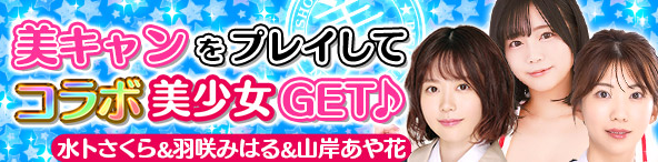 | ③コラボ期間中に開催しているメインイベントに参加しよう | 【ハメカン】 パイアグラ×5 【美キャン】 ゴールド1,000,000 |