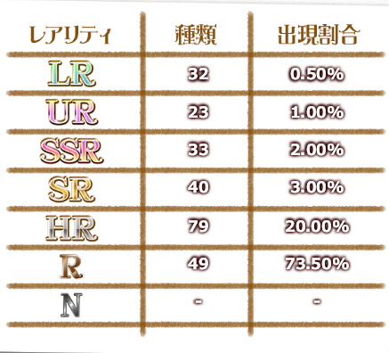 なお、あくまでLR抽選時に新キャラの入手確率が上昇するだけであって、LRの入手確率そのものが上がっているわけではありません。